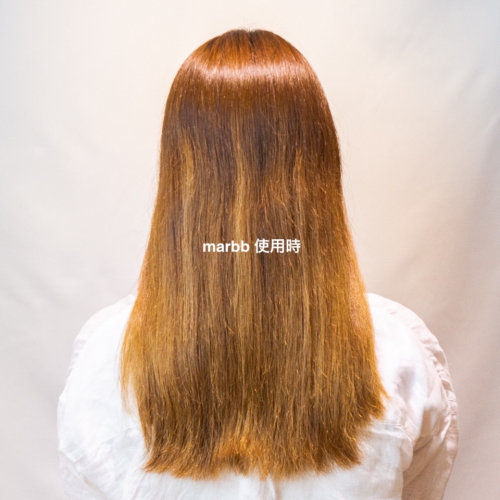 marbbを使用すると、髪の毛1本1本のアクアバランスが整うため、くせの収まりや根元の立ち上がり、うるさらな手触りに!